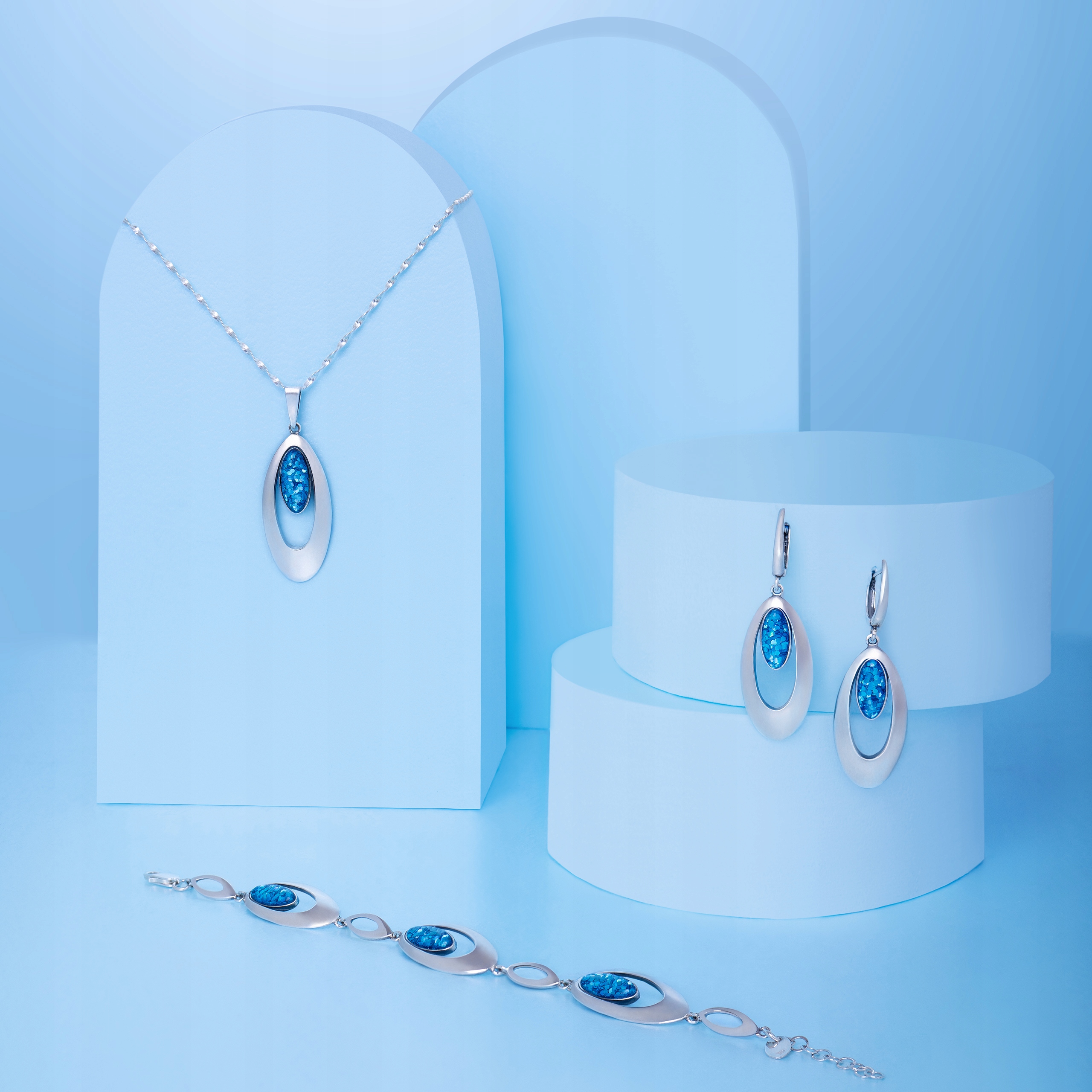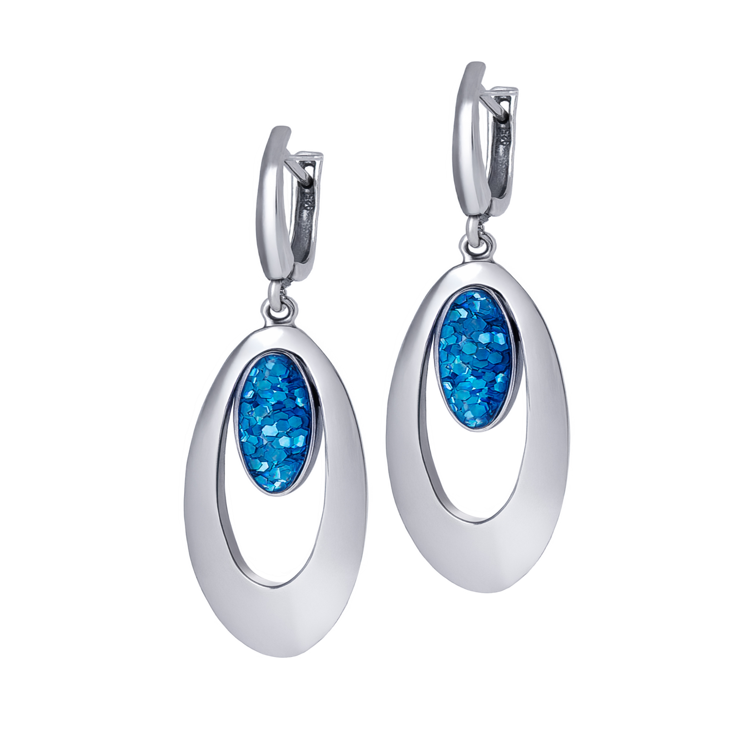 Strona główna / Produkty / Katalog Biżuterii / Kolczyki / Kolczyki Srebrne Wiszące Owalne z Niebieskim Opalem