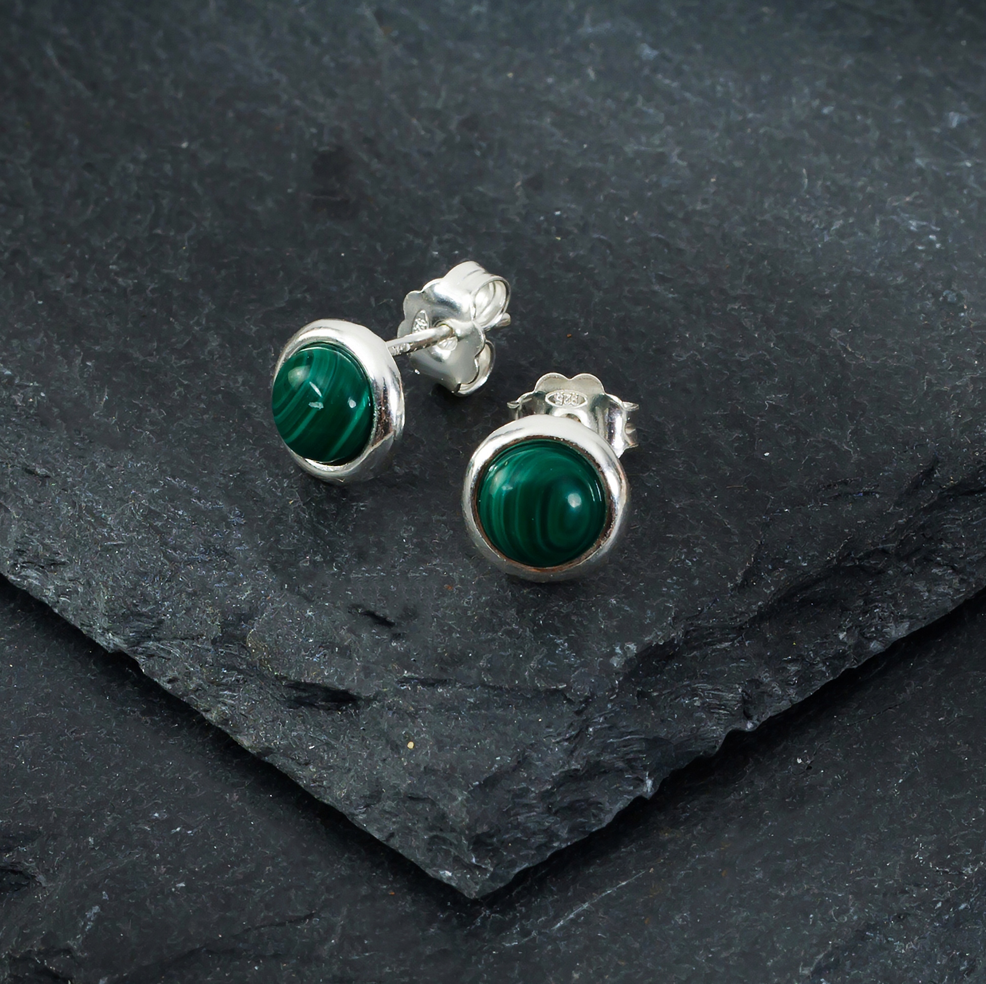 Kolczyki Srebrne Okrągły Malachit