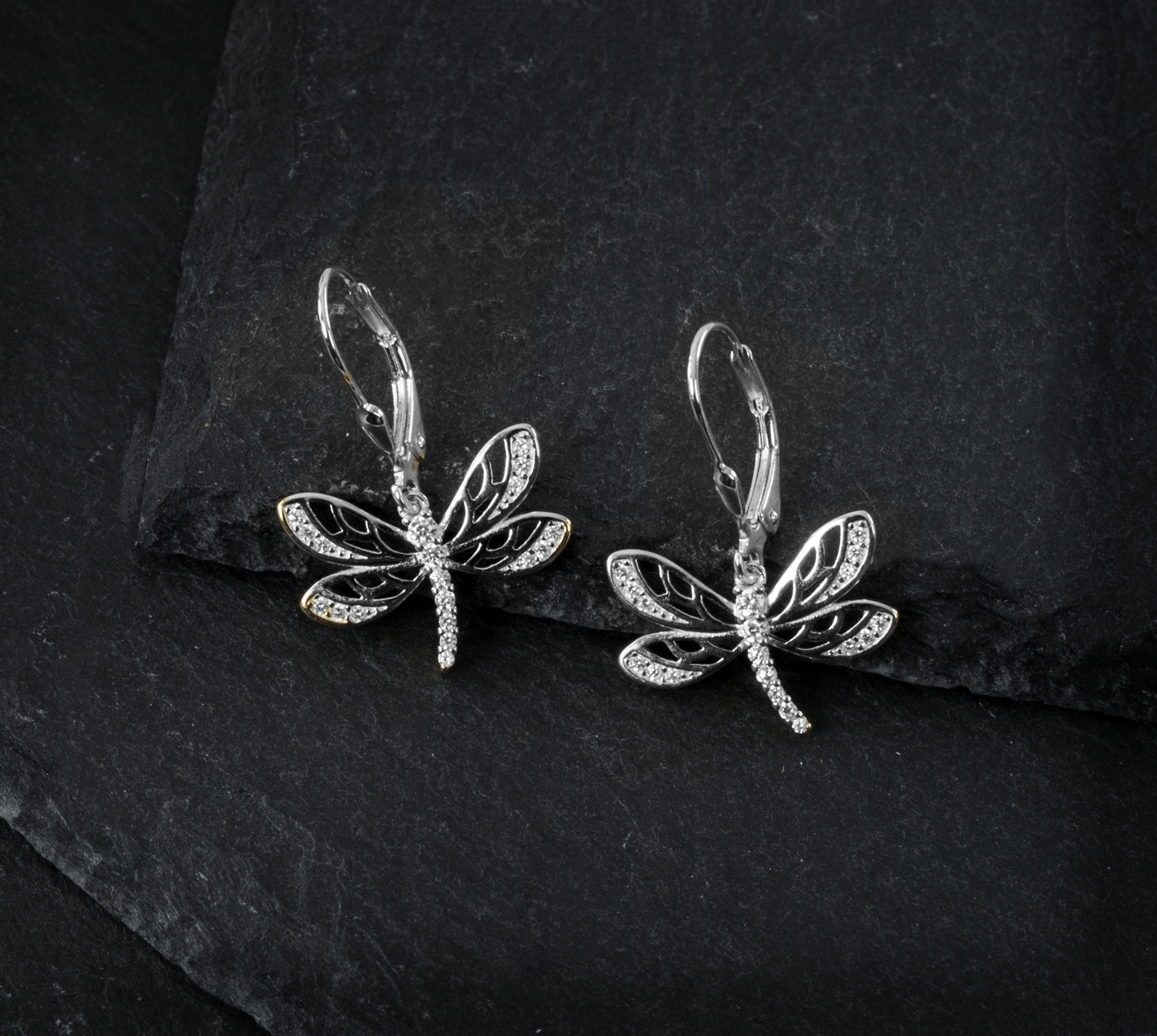 Kolczyki Rodowane Ważki z Cyrkoniami