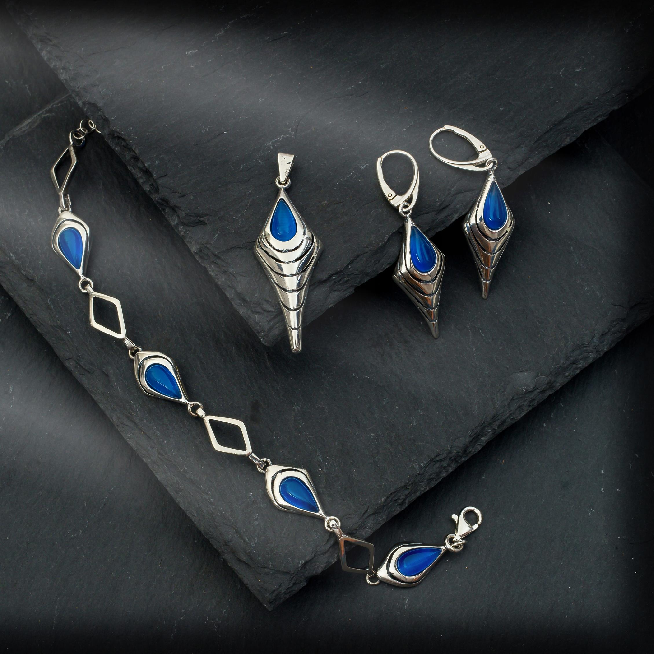 Kolczyki Wiszące z Kobaltowym Kamieniem