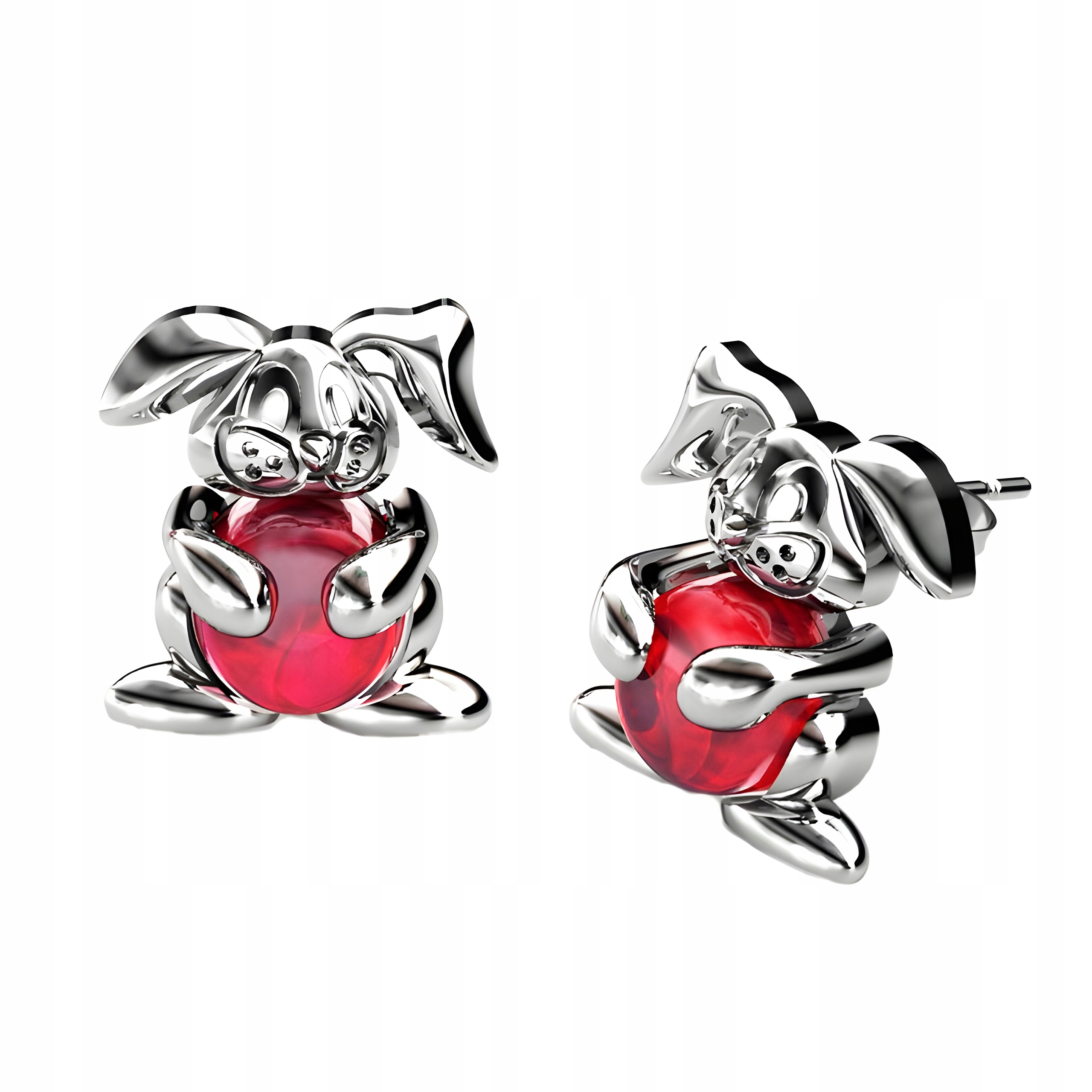 Kolczyki Króliki Zajączki z Czerwonym Kamieniem