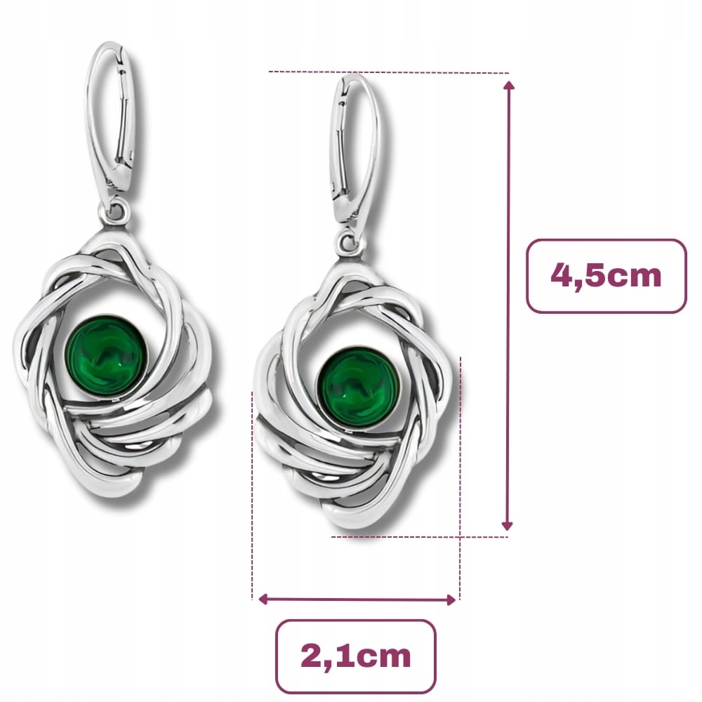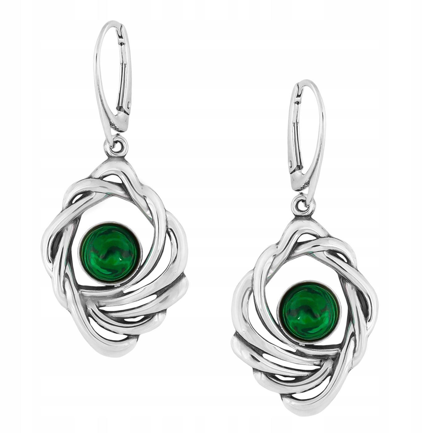 Kolczyki Srebrne z Malachitem Zielony Kamień