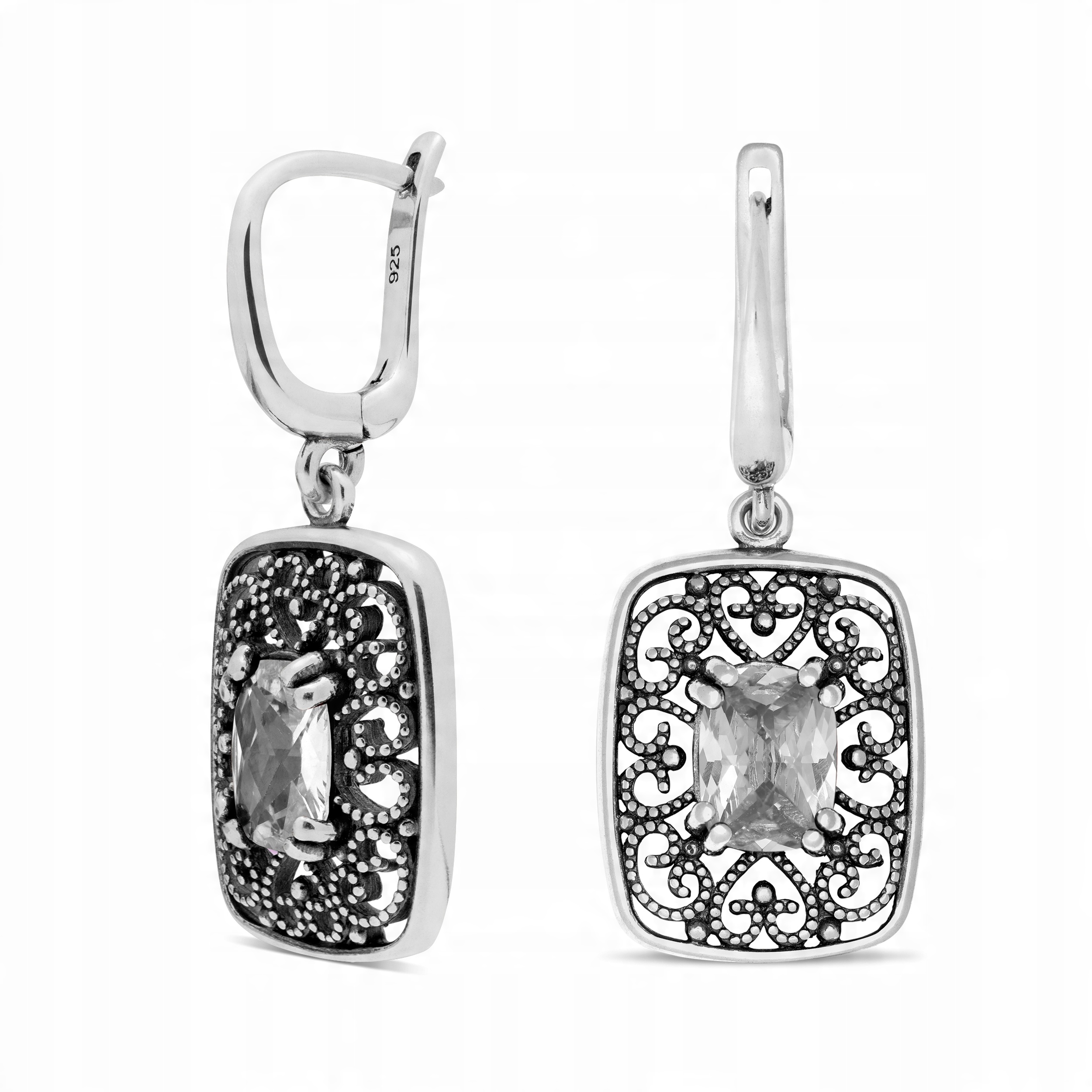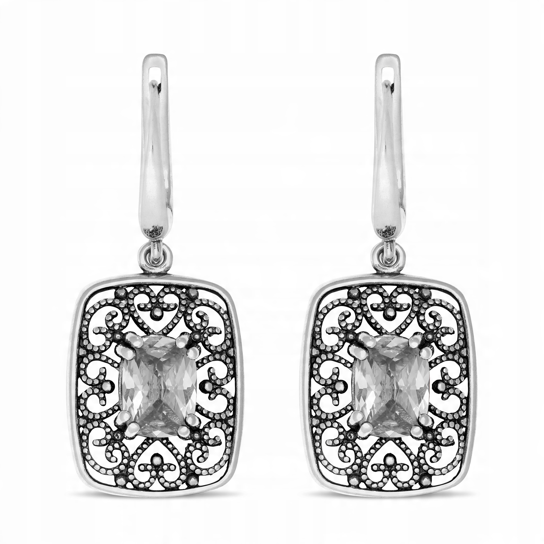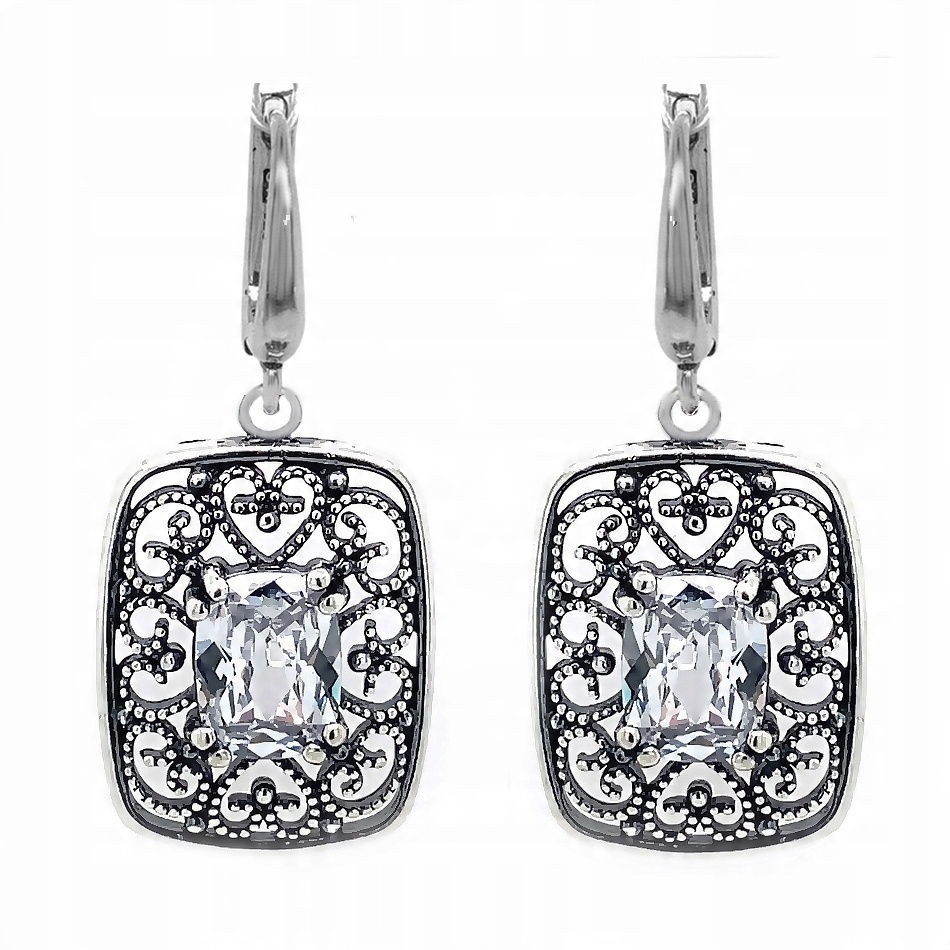Kolczyki Srebrne w Stylu Vintage z fasetowanymi Cyrkoniami
