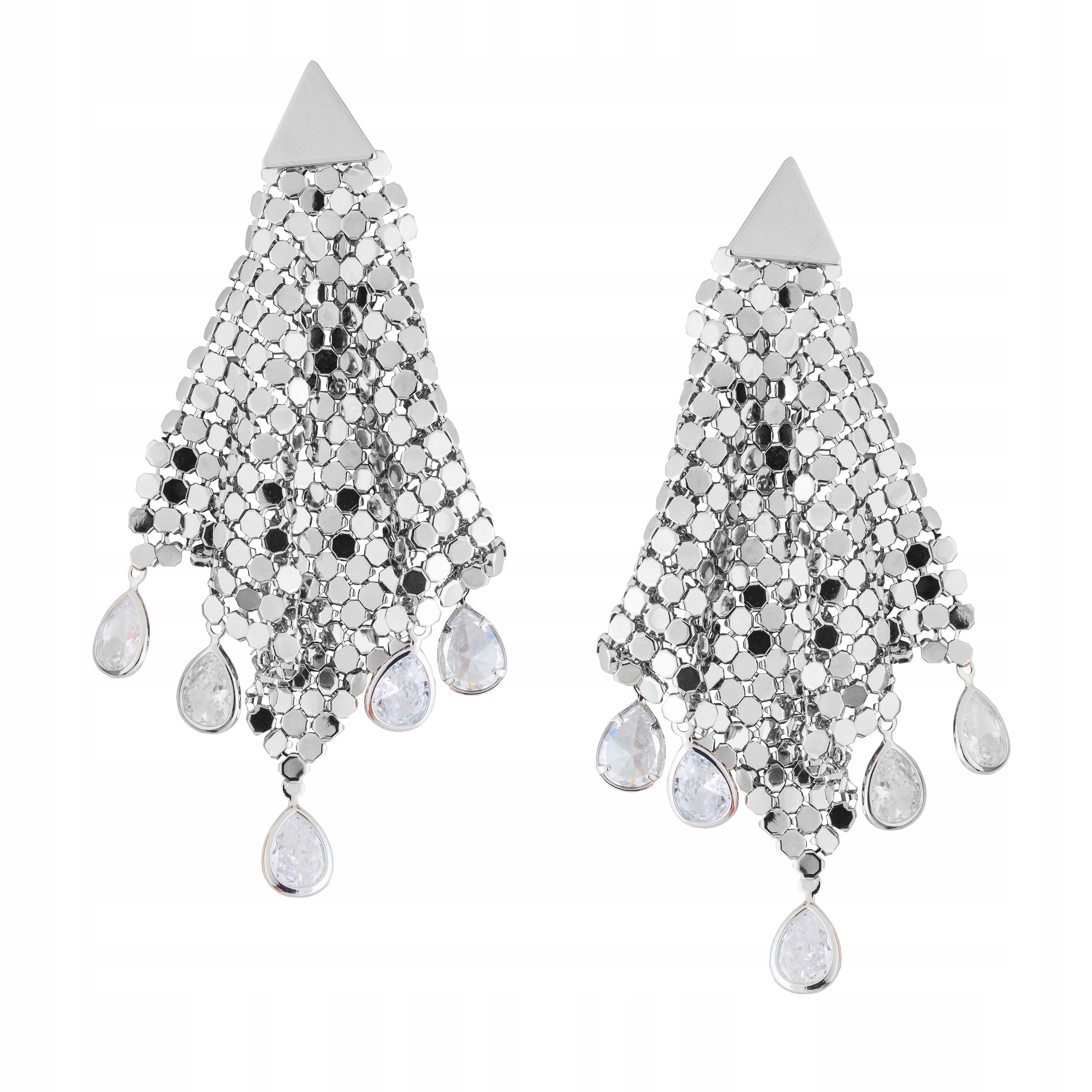 Kolczyki Cyrkonie Łezki Długie Wachlarze Stal Szlachetna