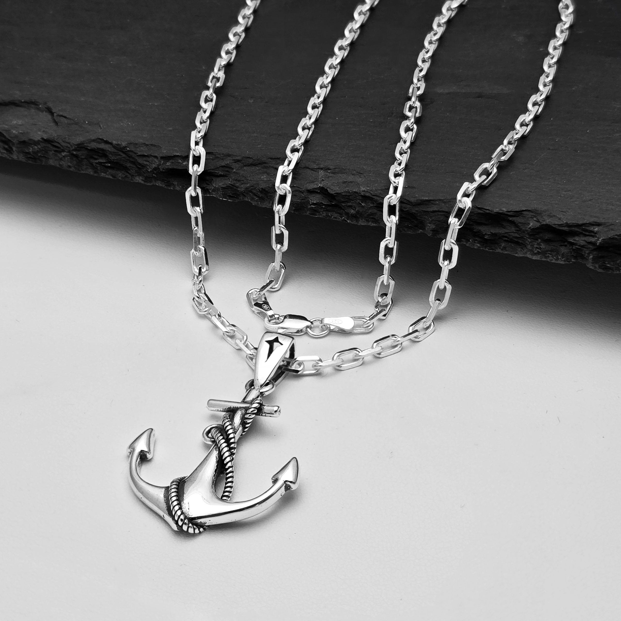 Zawieszka Srebrna Kotwica z Owiniętą Liną Dla Faceta