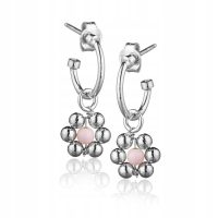 Kolczyki Rodowane Kwiatki z Różowym Kamieniem