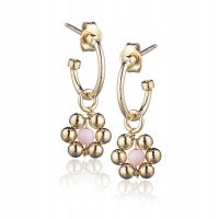 Kolczyki Złote Kwiaty z Różowym Kamieniem